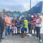 Alcalde de Castillo, Faurys Vélez, y el Presidente del PRM Edwin Mercedes Entregan Tableros a la Cancha de Barrio Sur